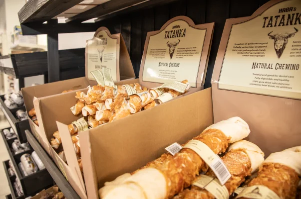 Chews à mâcher naturels pour animaux de compagnie Tatanka emballés dans des boîtes de présentation de magasin à Argenton-sur-Creuse dans l'Indre 36